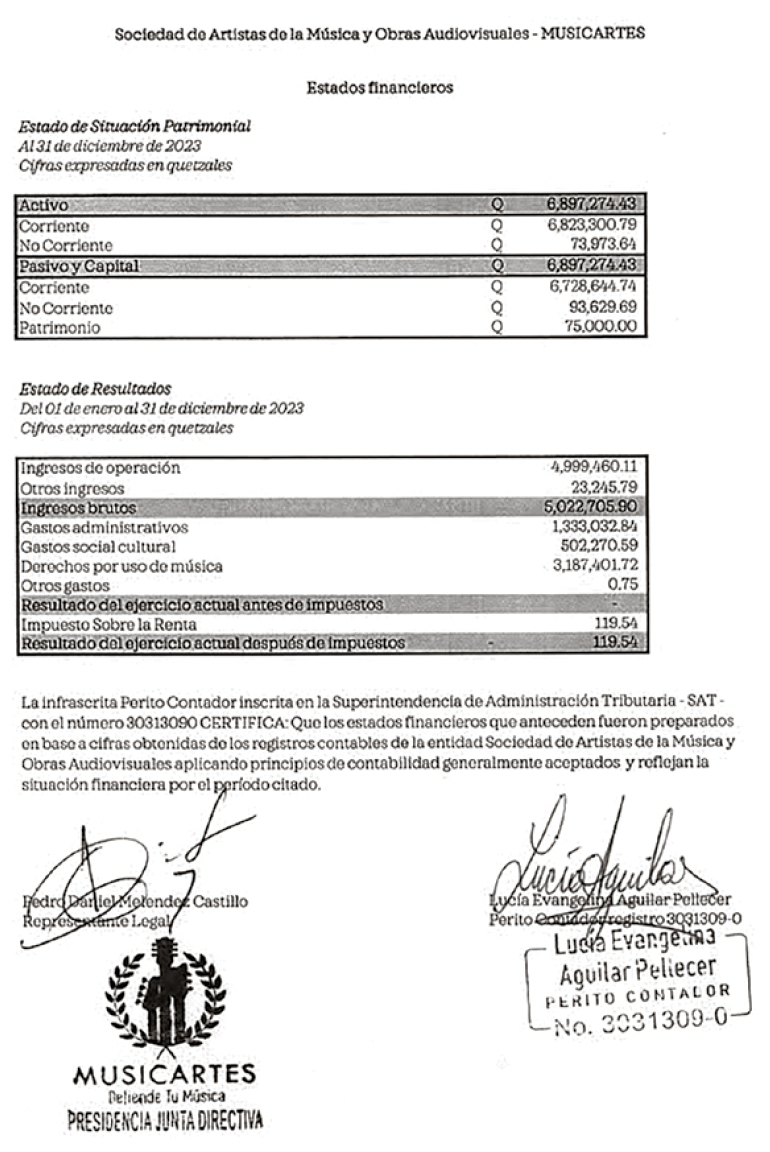 Estados Financieros de MUSICARTES enero – Aprobados en asamblea general durante los primeros meses  2024